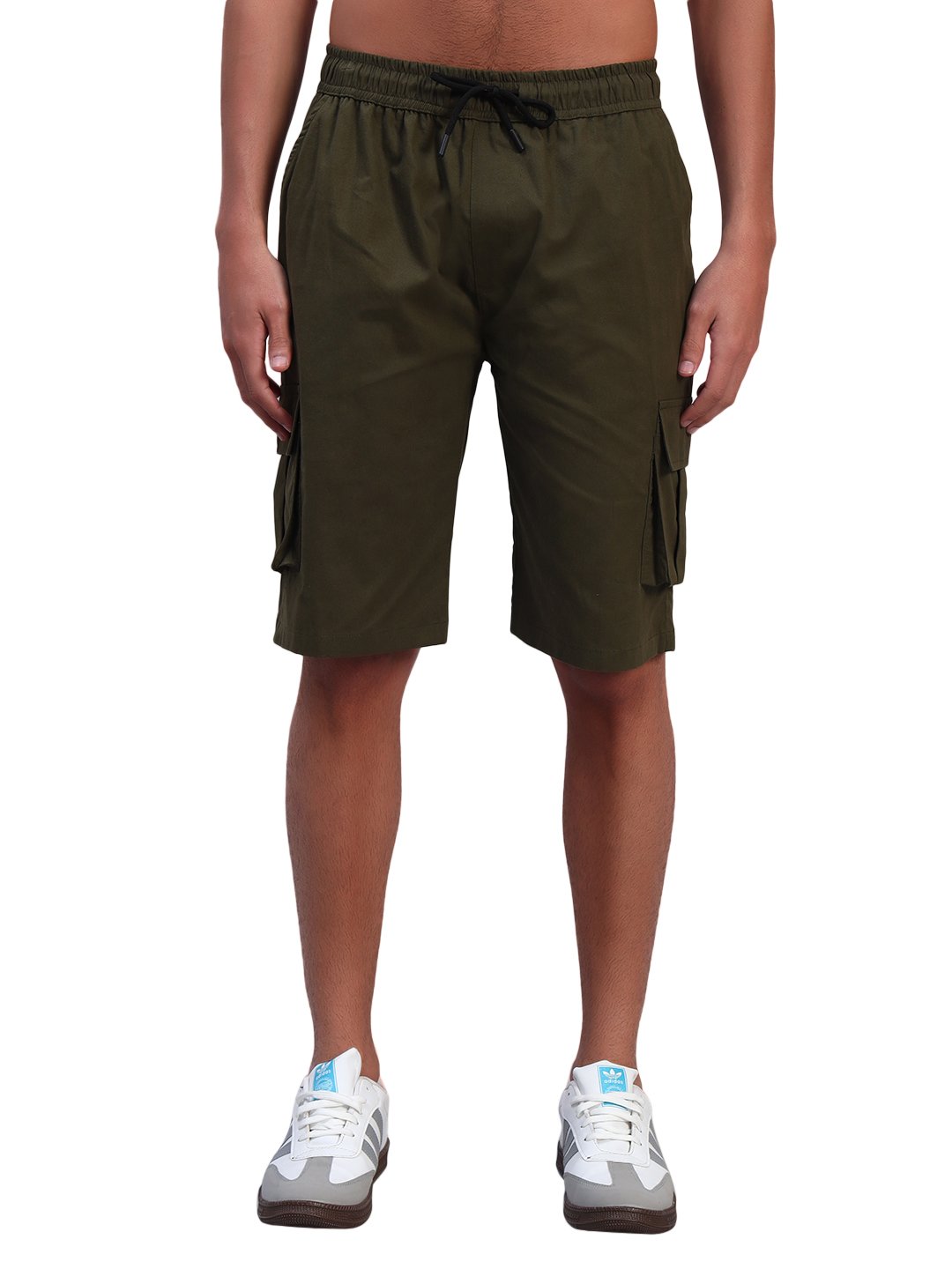 Embracing a modern casual look, these cargo shorts are designed for everyday comfort and effortless style. Crafted from soft cotton fabric, they feature a relaxed fit with an elastic waistband and adjustable drawstring for a secure and comfortable feel. The versatile olive-green color adds a timeless touch, while the functional cargo pocket enhances practicality, making them ideal for daily wear, travel, and outdoor activities.