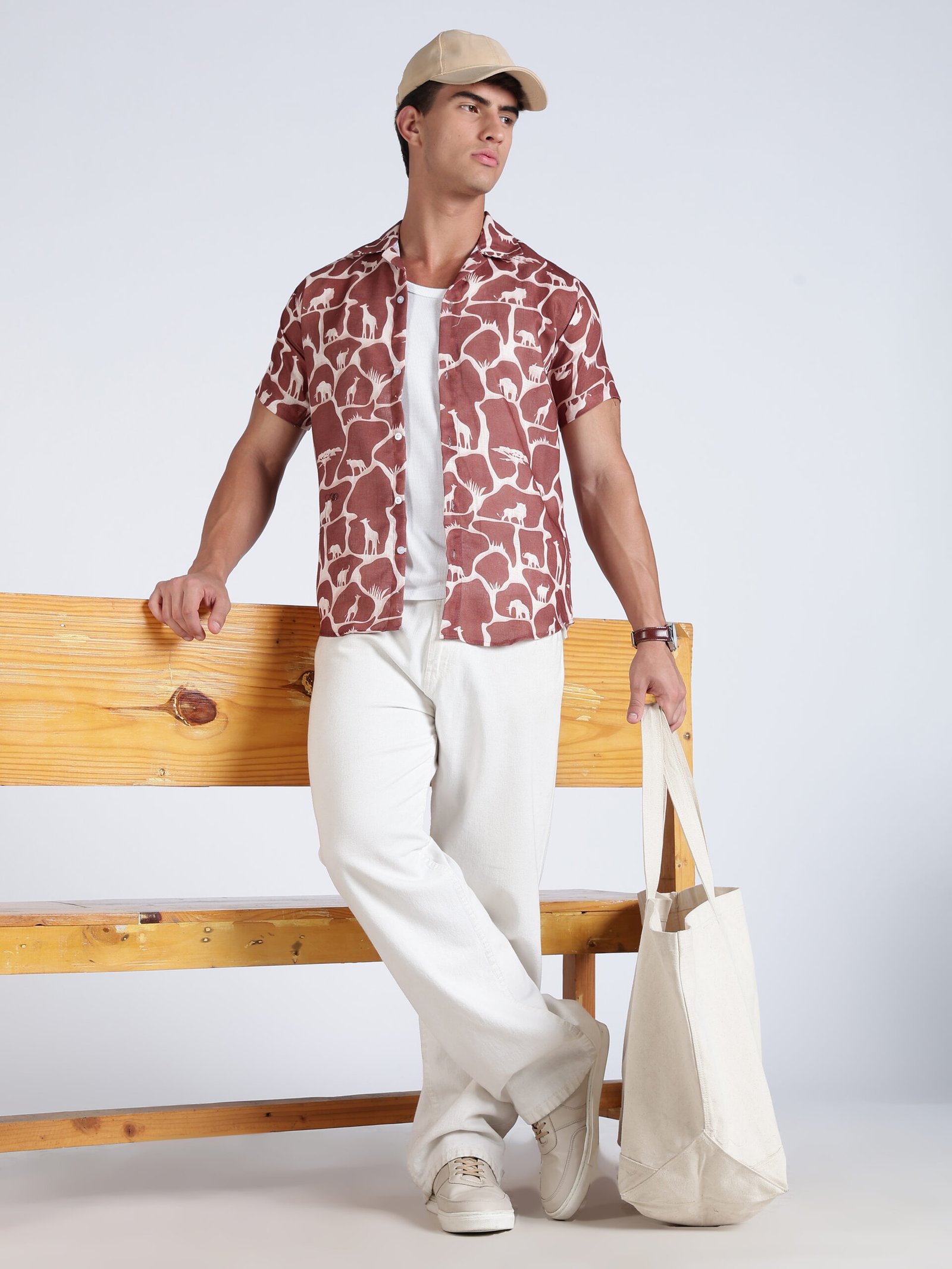 Upgrade your everyday look with this Maroon Safari Print Shirt, designed for men who appreciate standout style with effortless comfort. The rich maroon base paired with a modern wildlife-inspired print creates a unique statement piece perfect for summer and casual occasions.