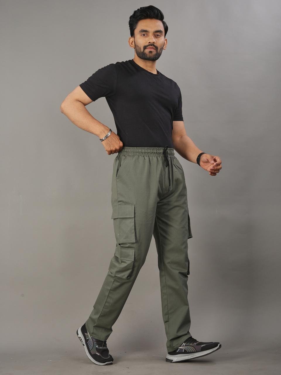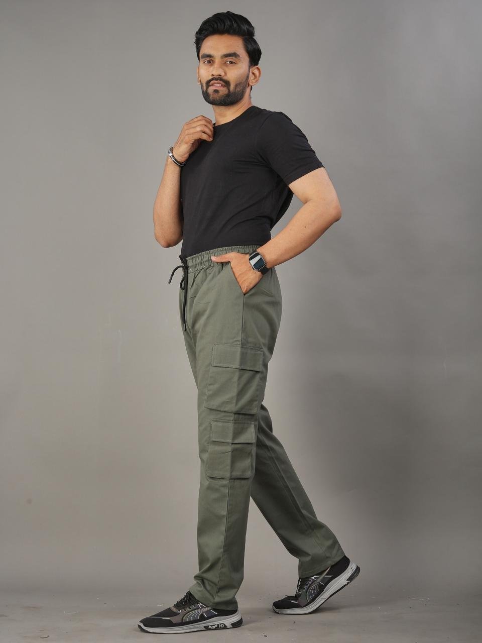 Stay comfortable and stylish with these olive green cargo trousers designed for everyday wear. Made with high-quality cotton fabric, they offer a perfect balance of durability, comfort, and practical functionality.