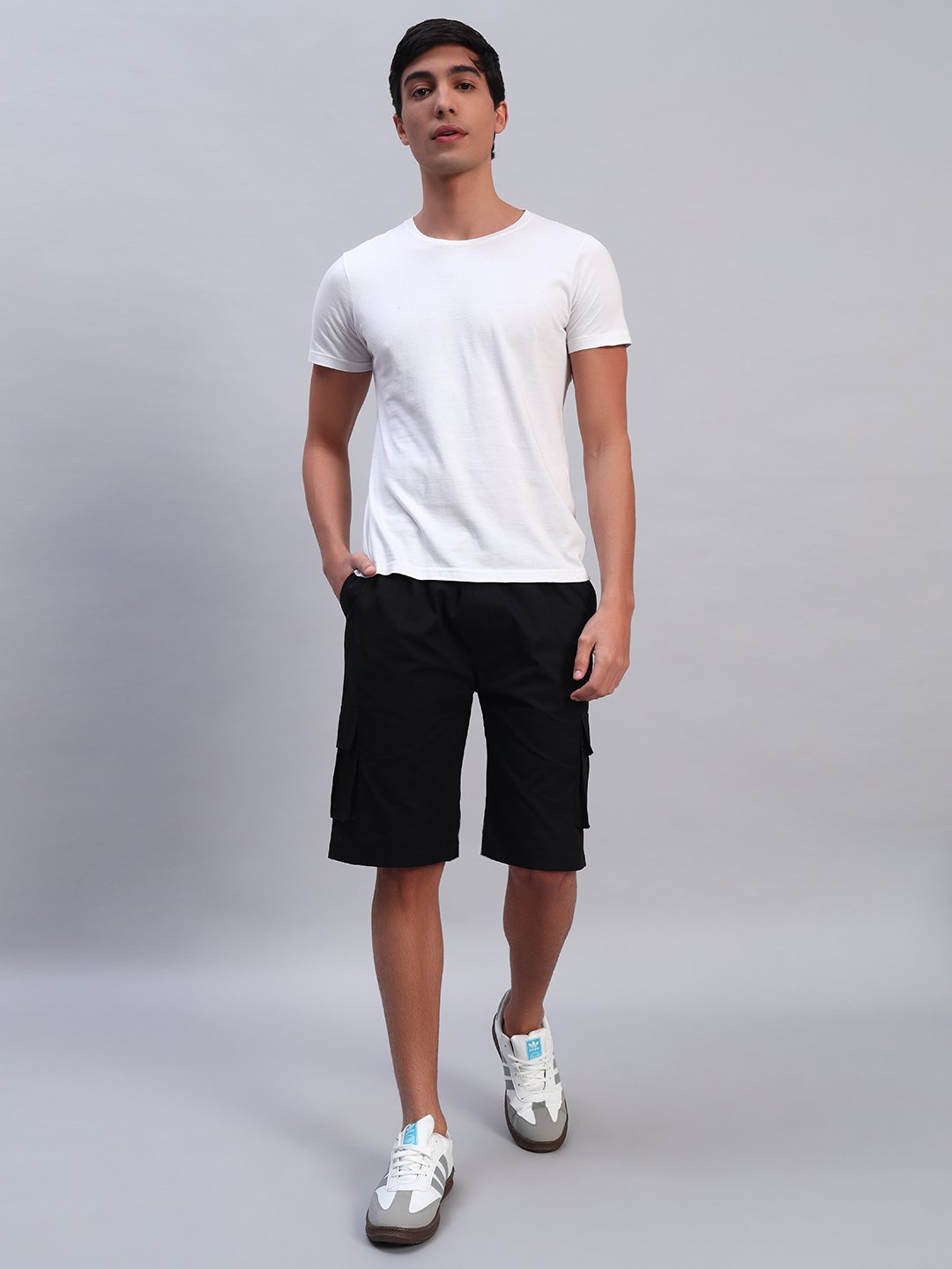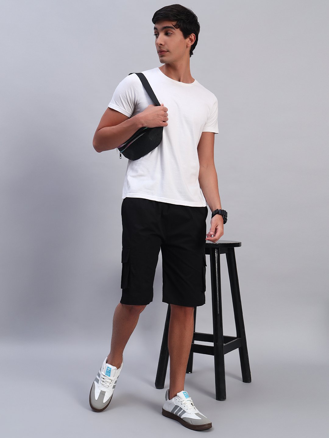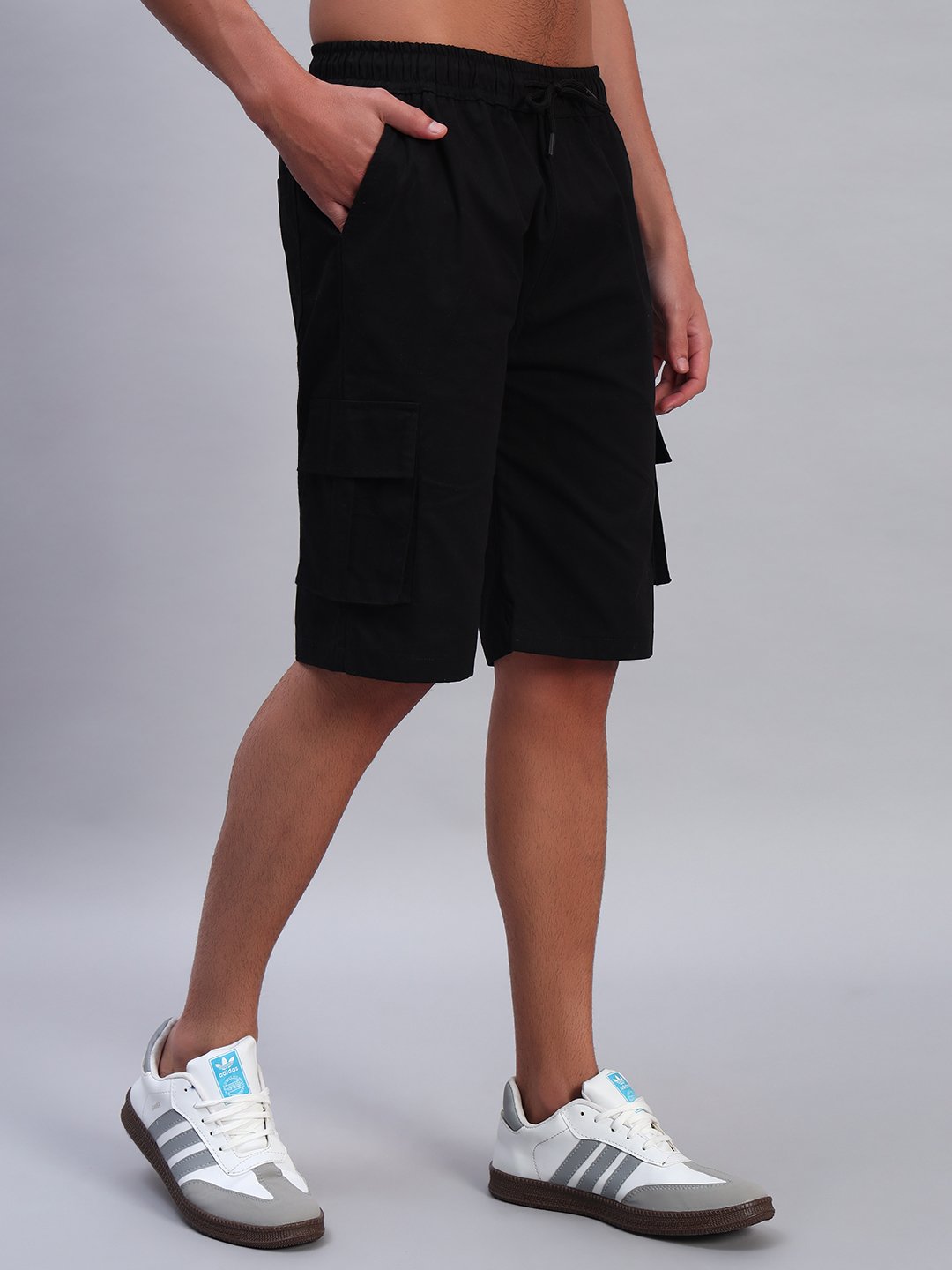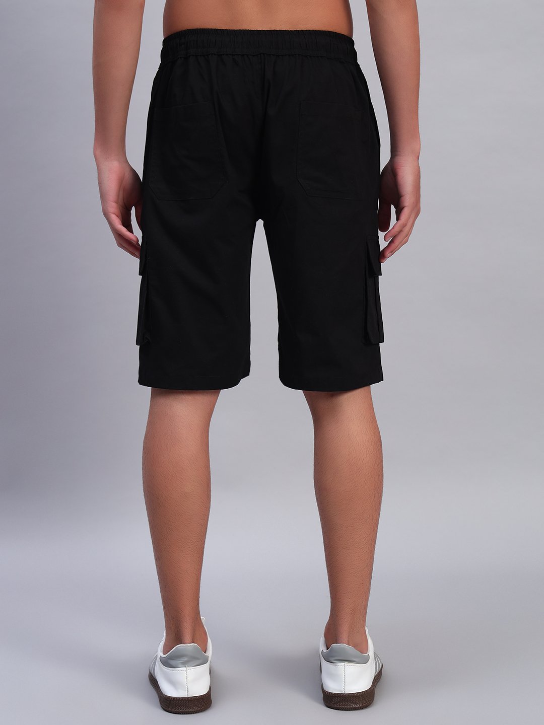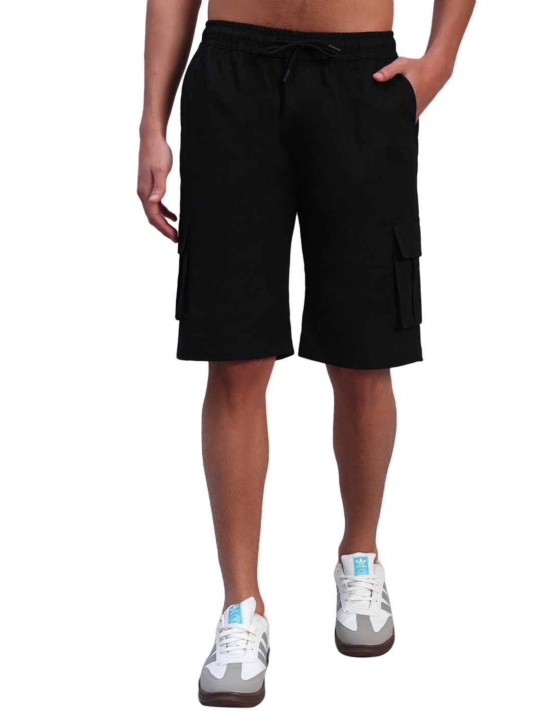 Embracing a modern casual look, these cargo shorts are designed for everyday comfort and effortless style. Crafted from soft cotton fabric, they feature a relaxed fit with an elastic waistband and adjustable drawstring for a secure and comfortable feel. The classic black color adds a versatile and timeless touch, while the functional cargo pockets provide extra utility, making them perfect for daily wear, travel, and casual outings.